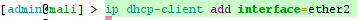 ip dhcp-client add interface=ether2